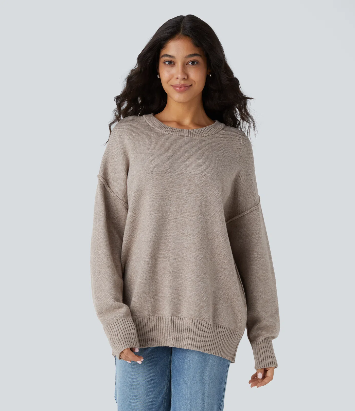 라운드넥 드롭숄더 긴팔 캐주얼 스웨터
