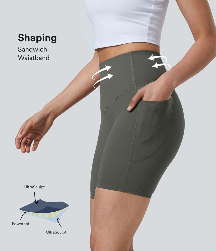 Halara UltraSculpt™ High Waisted Tummy Control Shaping Women Gym Running Biker Shorts 7'' With Pockets