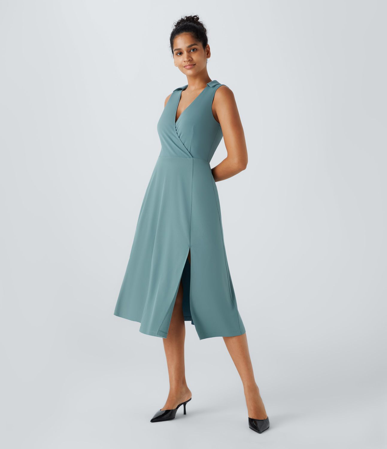 Breezeful™ Kara V-Neck Sleeveless Invisible Zipper Split Quick Dry Midi Workwear Dress