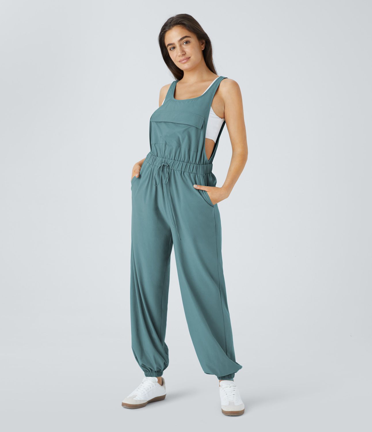 Breezeful™ Sleeveless Backless Drawstring Multiple Pocket Quick Dry Casual Jogging Jumpsuit