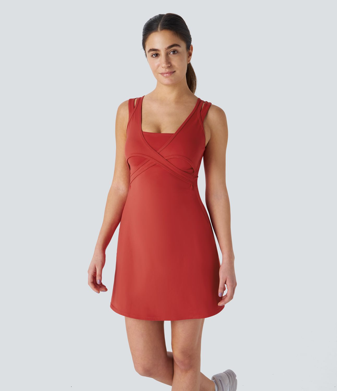 더블 스트랩 백리스 2-in-1 포켓 퀵 드라이 미니 테니스 액티브 드레스