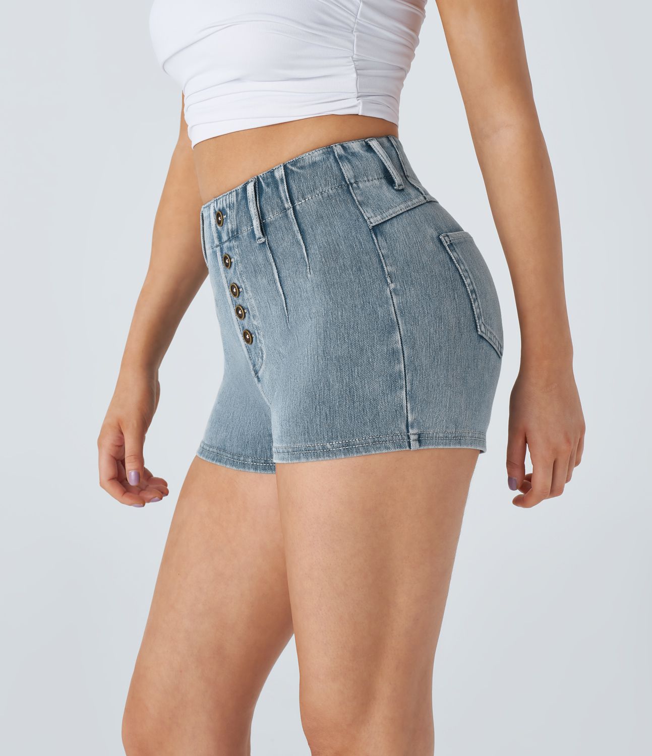 Halara Flex™ high waist decorative button back pocket stretchy knit denim casual capri pants 2pcs