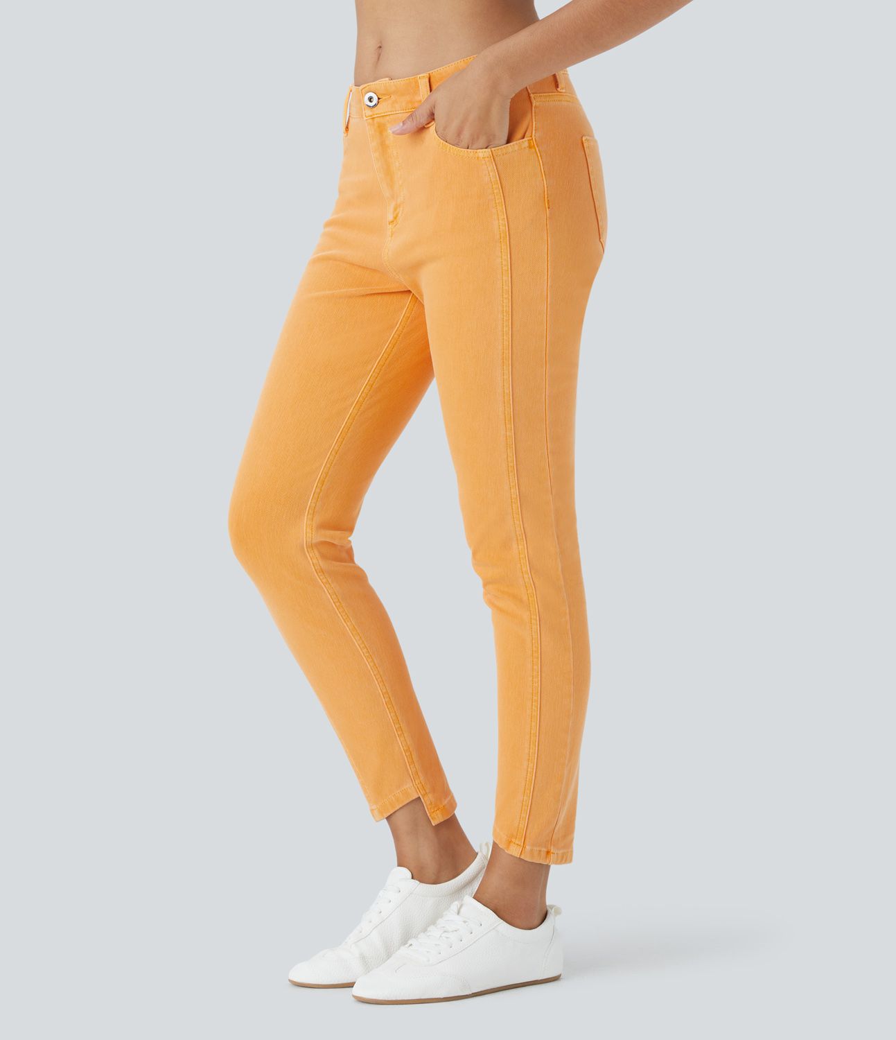 Halara Flex™ Mid-Waist Button Zip Multiple Pocket Colorful Stretch Knit Casual Skinny Jeans