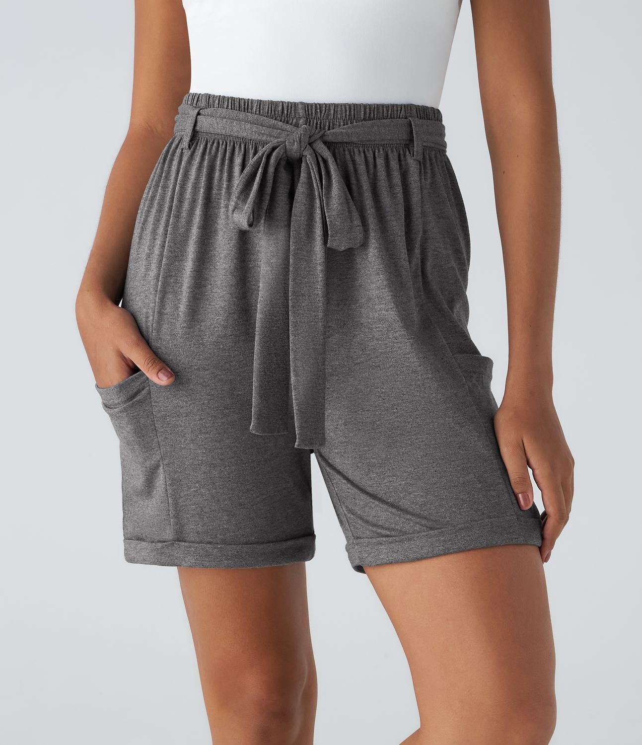 High waist belt side pocket casual shorts