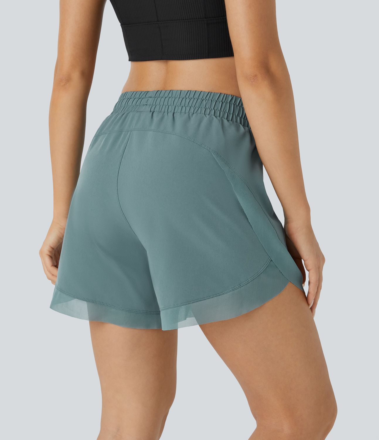미드 라이즈 드로스트링 대비 메시 2-in-1 플로위 런닝 반바지