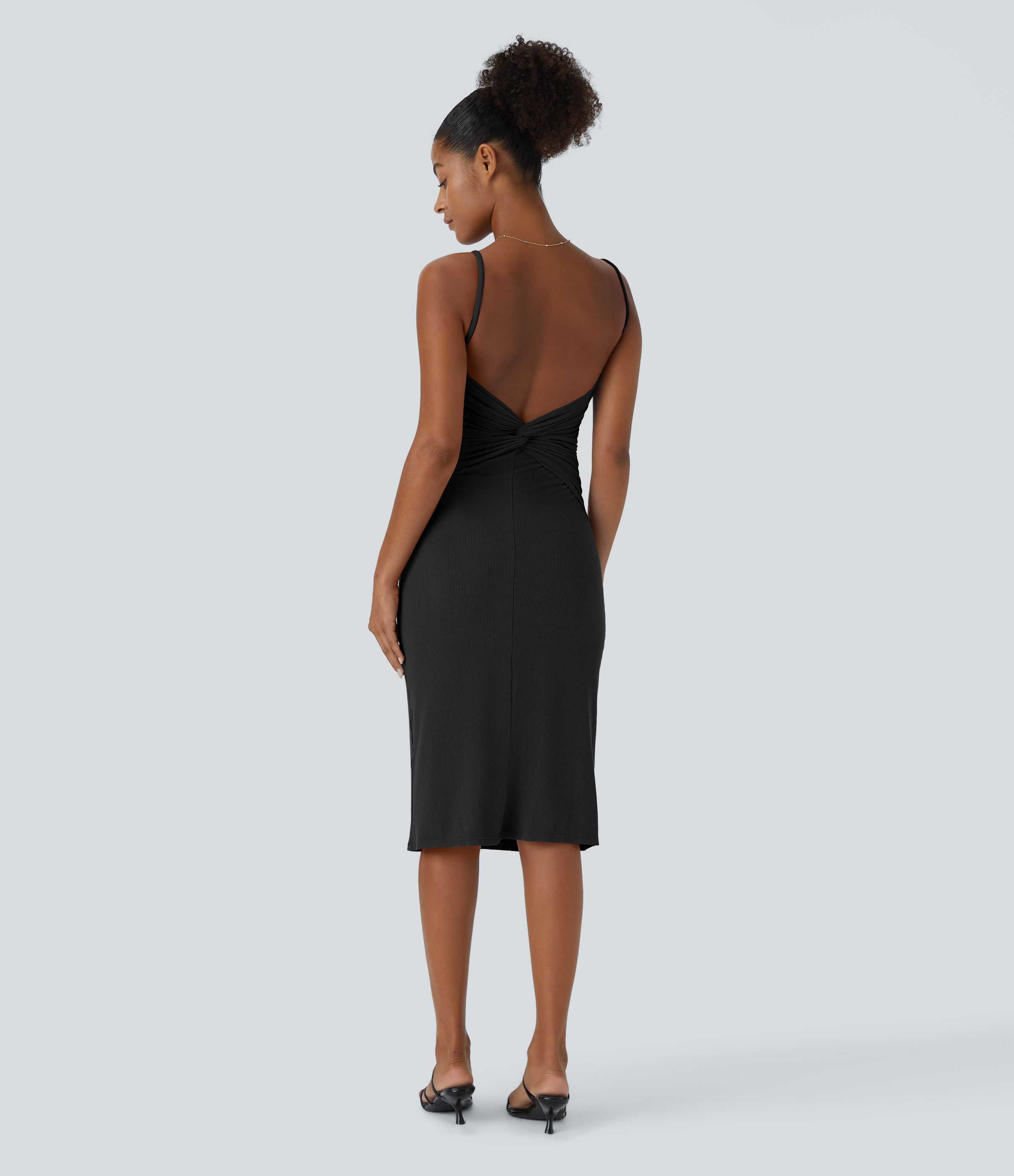 Golji Knit Backless Twist Bodycon Midi Casual Dress