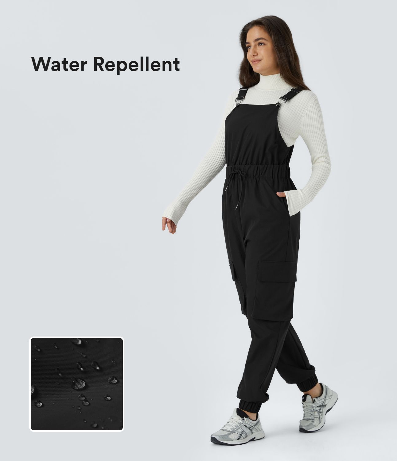 Waterproof adjustable strap drawstring multiple pocket outdoor cargo jogger overall